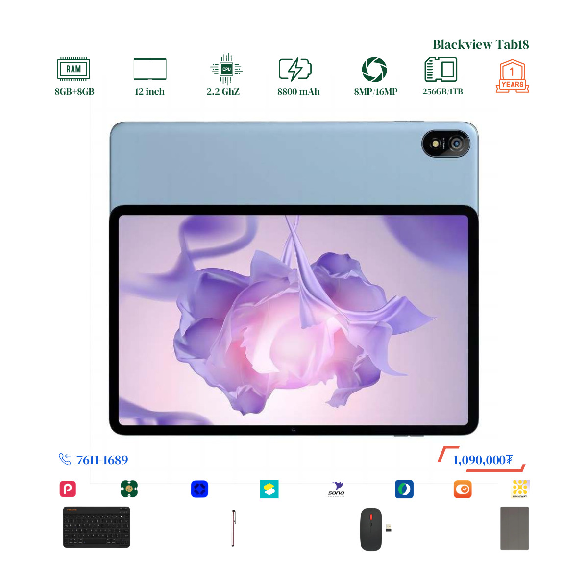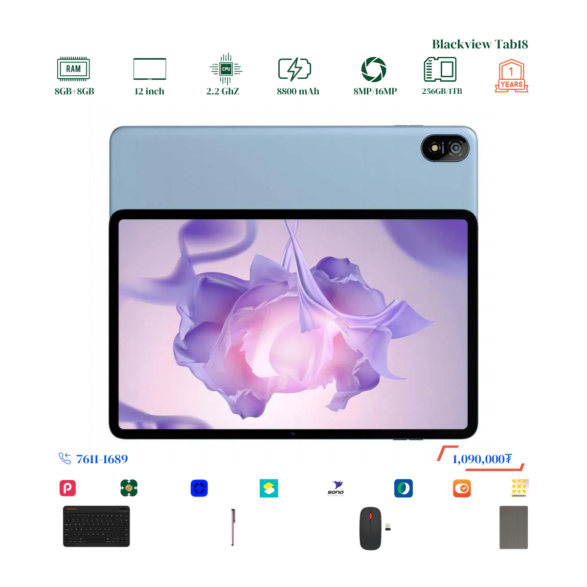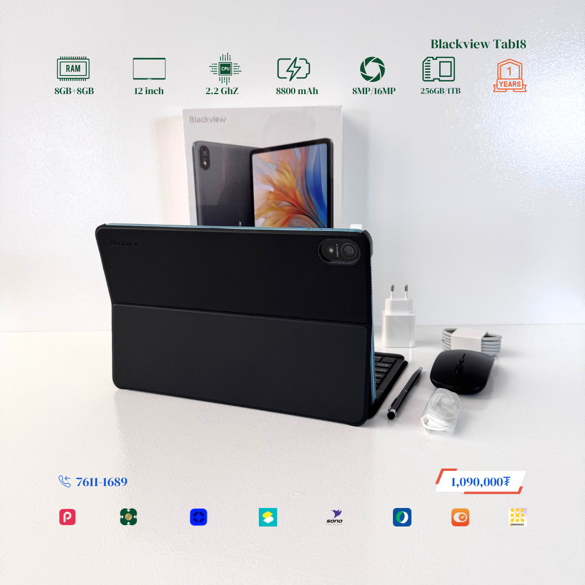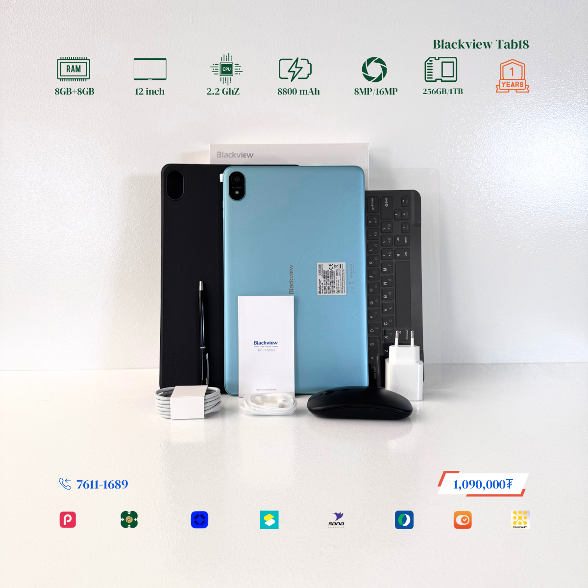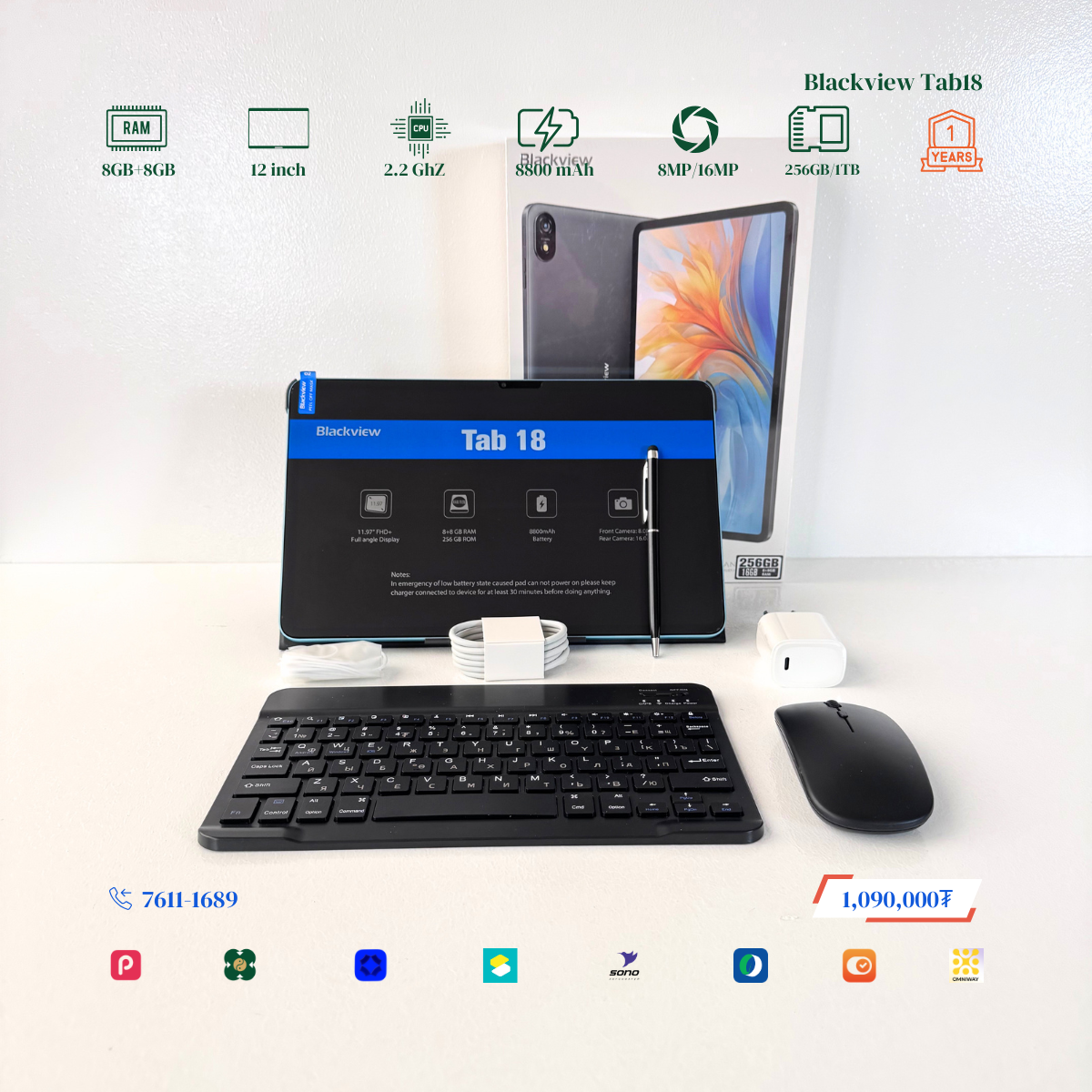 #Blackview брэндийн онцлог нь 12 инчийн Илүү ТОМ дэлгэцтэй, багтаамж #256GB, дэлгэцний нягтрал 2.4K Ultra, хурд нь 8GB+8GB буюу #16GB хүрч RAM-тай. Урд тал 8MP ар тал 16MP-тай камертай. 2 сим эсвэл 1 сим TF cart орох боломжтой. # Blackview брэндийн тус загвар бид нэмэлтээр Монгол хэлтэй keyboard, mouse, үзэг, зөөлөн кейс дагалдуулж олгох болно. Үйлдвэрийн 1 жилийн баталгаатай.