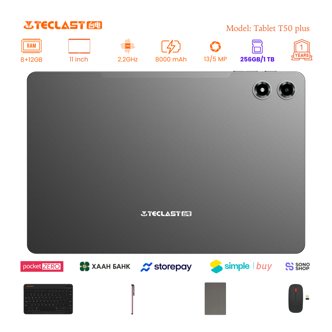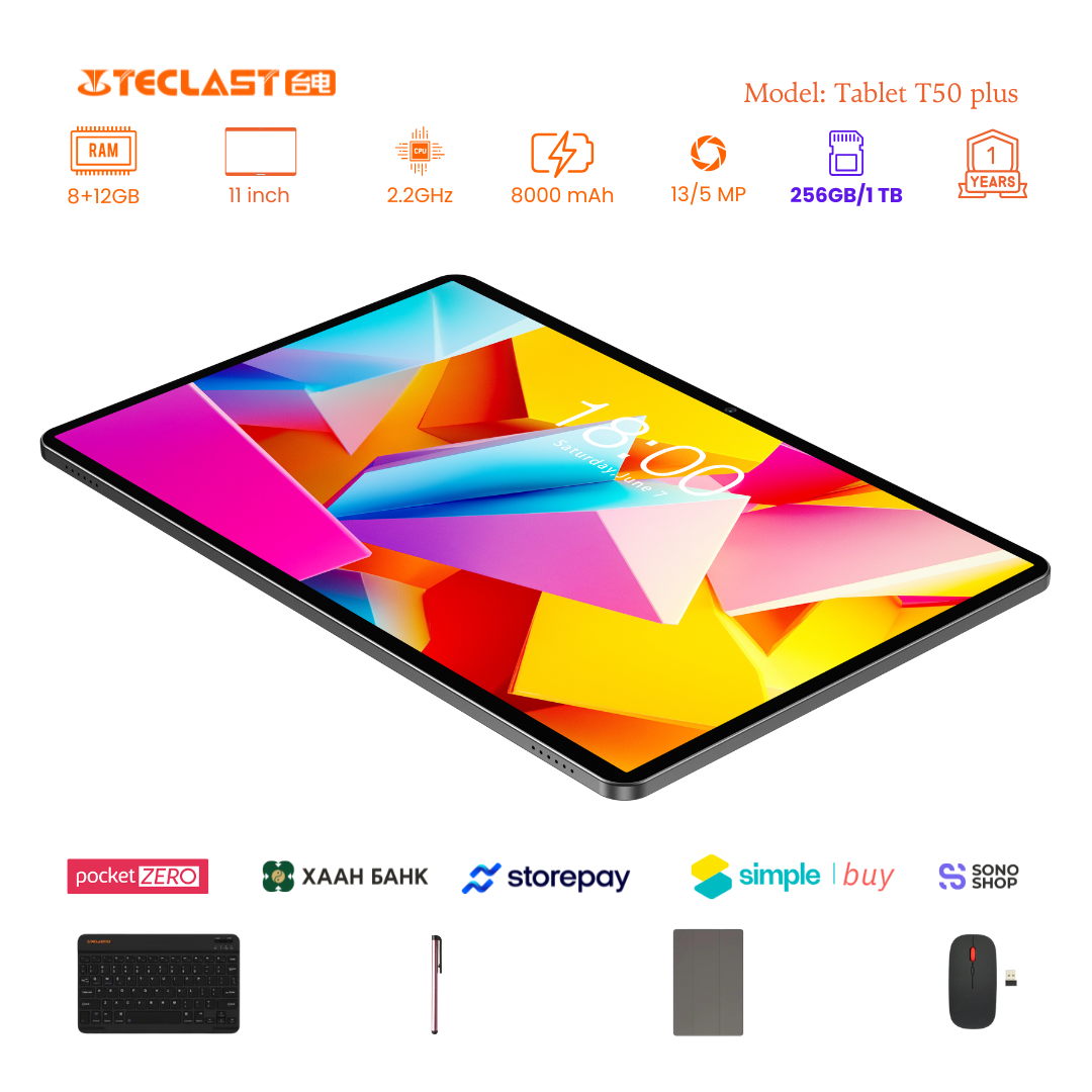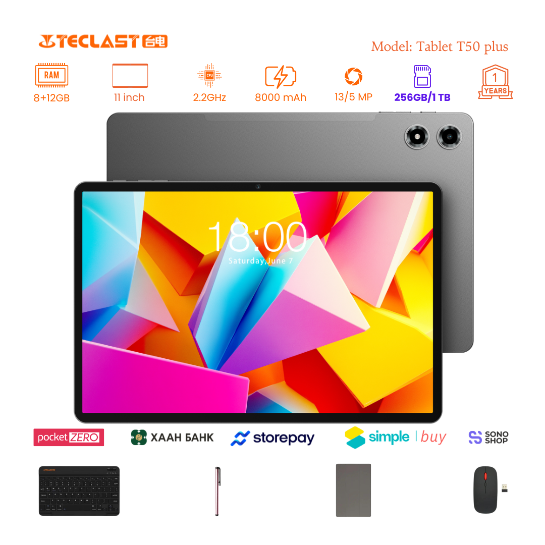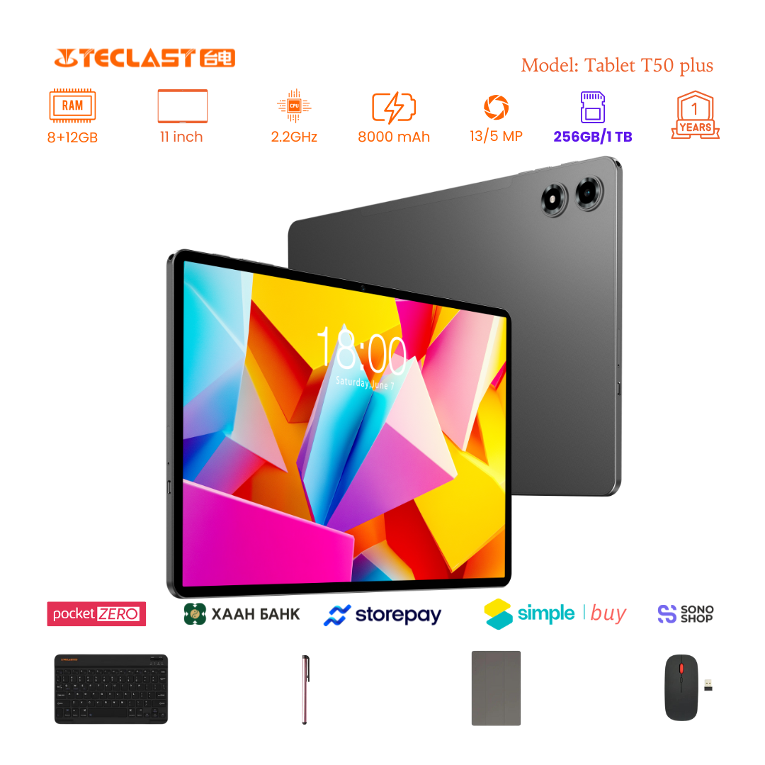 Тавлетийн онцлог нь дэлгэц 11 инч болж томорсон багтаамж 256GB, дэлгэцний нягтрал 2K Full HD, хурд нь 8GB+10GB LPDDR4X Багтаамж том бодит өндөр хурд гаргах учир өндөр үзүүлэлт шаардсан пограмм, тоглоомд гацахгүй. ардаа 2 камертай болж өмнөх загвараас урд тал 5MP ар тал 13MP-тай бөгөөд 2 сим эсвэл 1 сим TF cart орох боломжтой. #Teclast брэндийн тус загвар бид нэмэлтээр үзэг, keyboard, mouse, зөөлөн кейс дагалдуулж олгох болно. Үйлдвэрийн 1 жилийн баталгаатай.