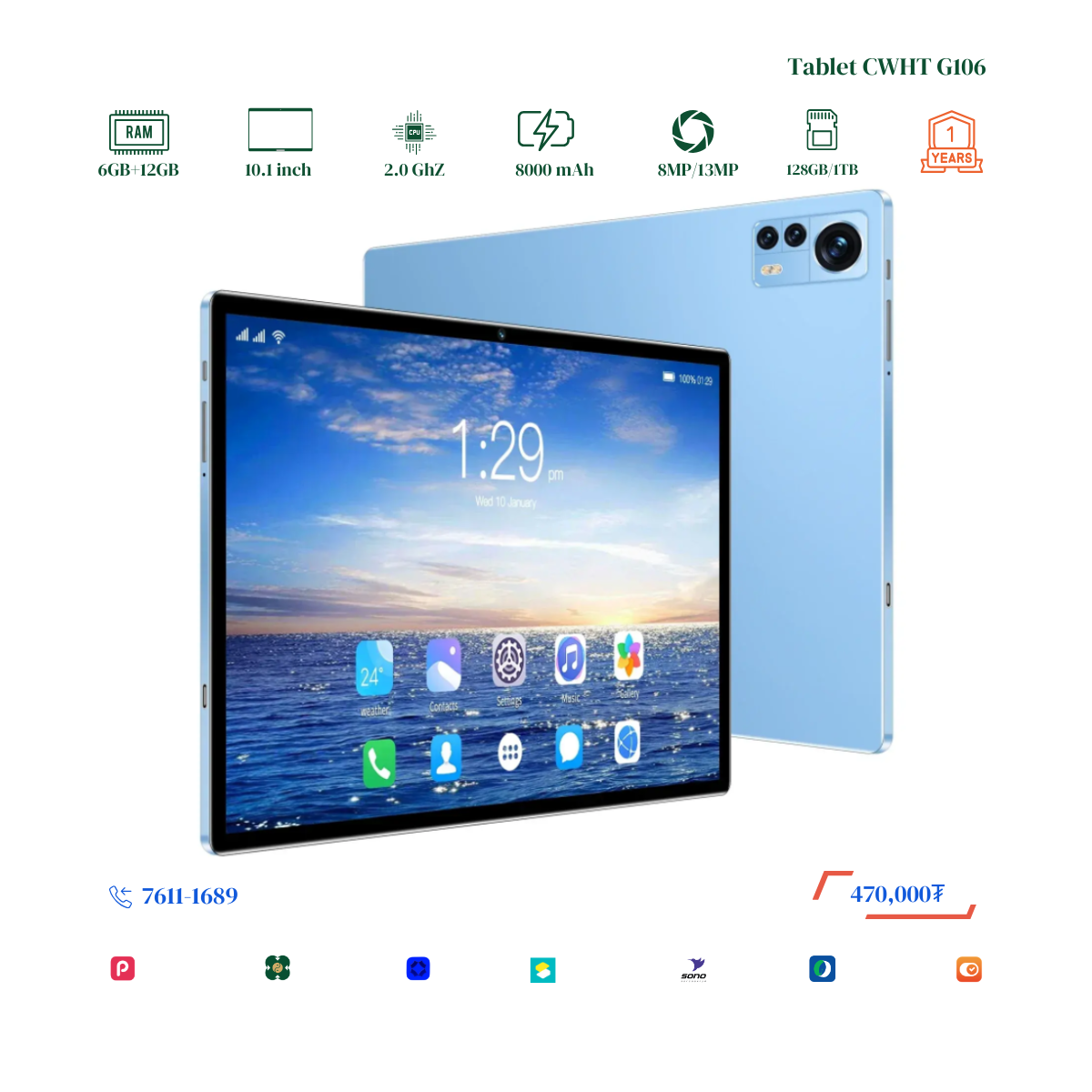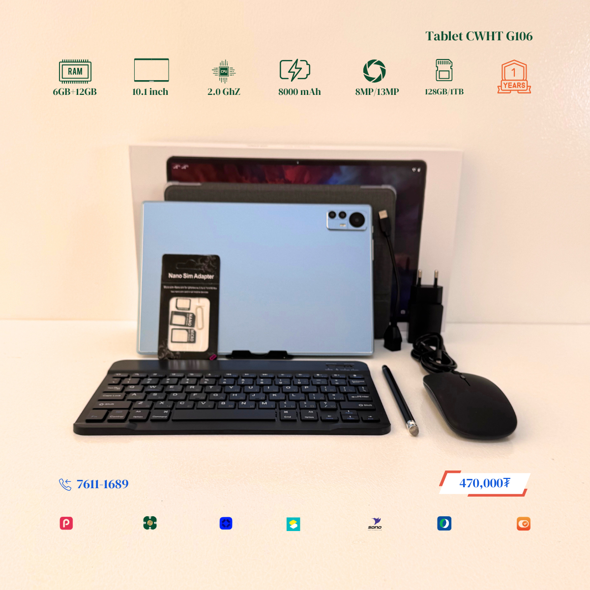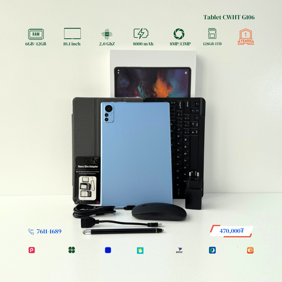 Тус tablet нь тус RAM 6+12GB болж Virtual RAM дэмждэг бөгөөд Монгол хэл буюу крилл үсэгтэй keyboard-тай болсон байгаа. Display resolution 1980x1200-тай болсон учир илүү тод цэвэрхэн, нягтрал өндөртэй онлайн хичээл, видео, зураг, тоглоом, хурал хийх үзэх боломжтой. 2 сим эсвэл 1 сим TF cart орох боломжтой. Нэмэлтээр keyboard, үзэг үнэгүй дагалдуулна. Үйлдвэрийн 1 жилийн баталгаатай.