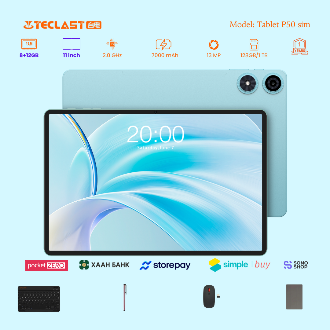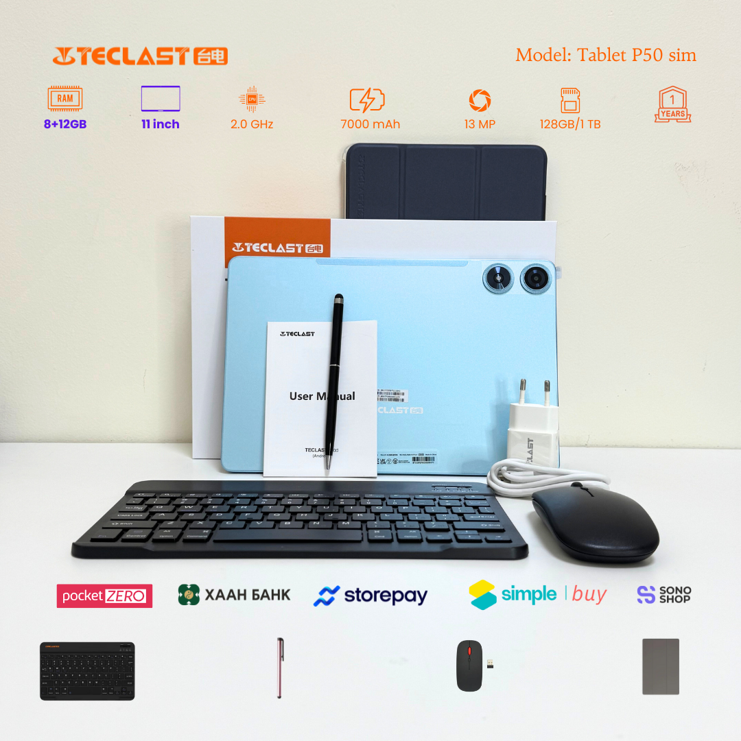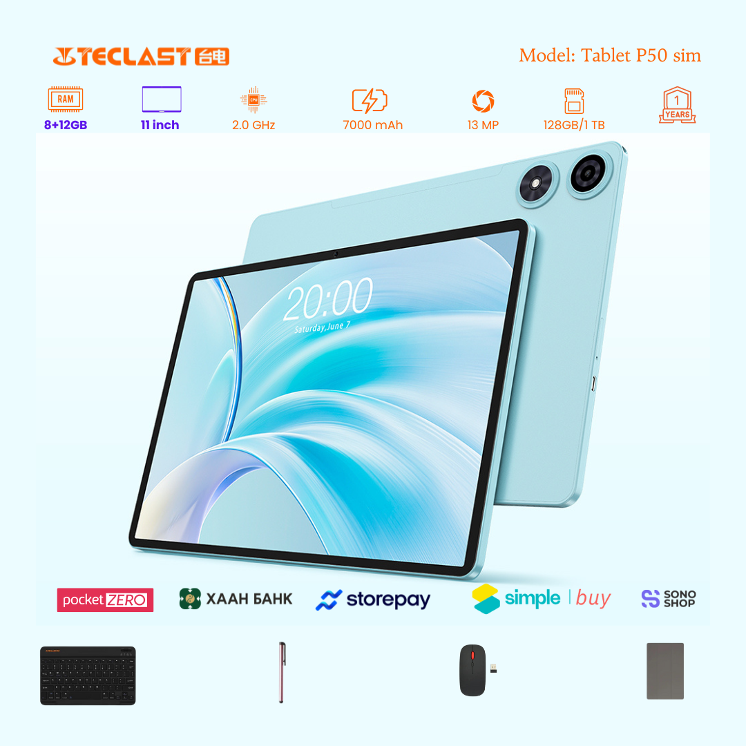 Тус тавлетийн онцлог нь өмнөх загвараас хурд нэмэгдэж 8GB+12GB LPDDR4X буюу 20GB гаргах боломжтой болсон байгаа. Камер 8MP ар тал 13MP-тай бөгөөд 2 сим эсвэл 1 сим TF cart орох боломжтой. #Teclast брэндийн тус загвар бид нэмэлтээр үзэг, keyboard, mouse, зөөлөн кейс дагалдуулж олгох болно. Үйлдвэрийн 1 жилийн баталгаатай.