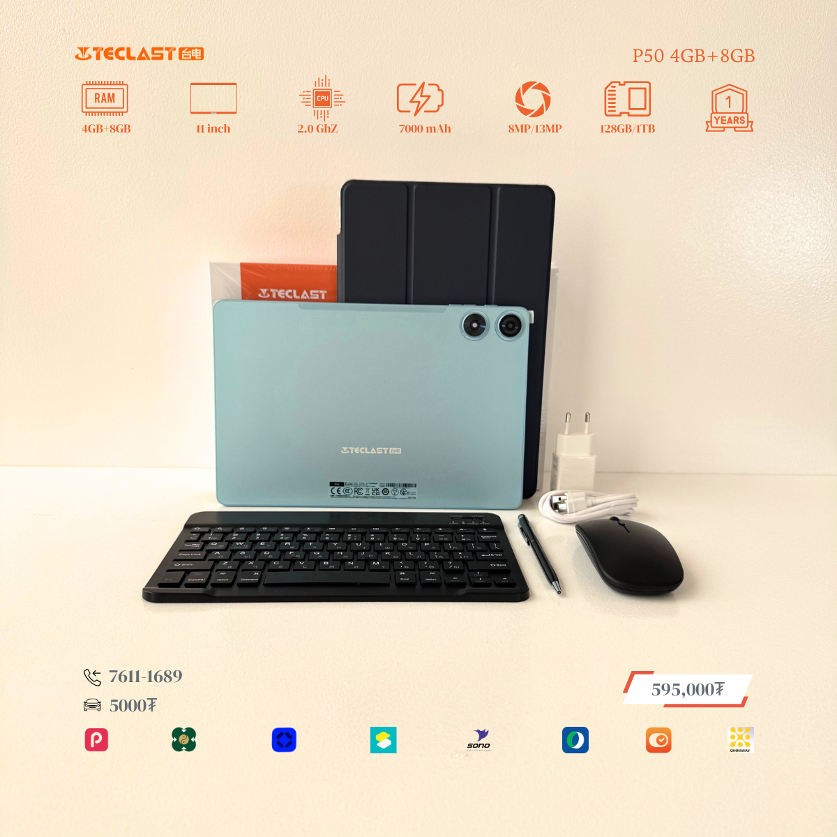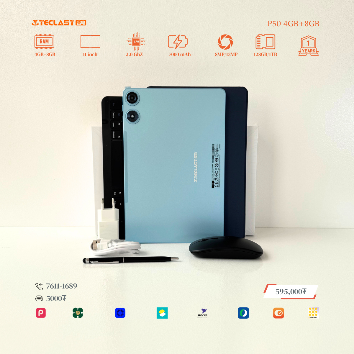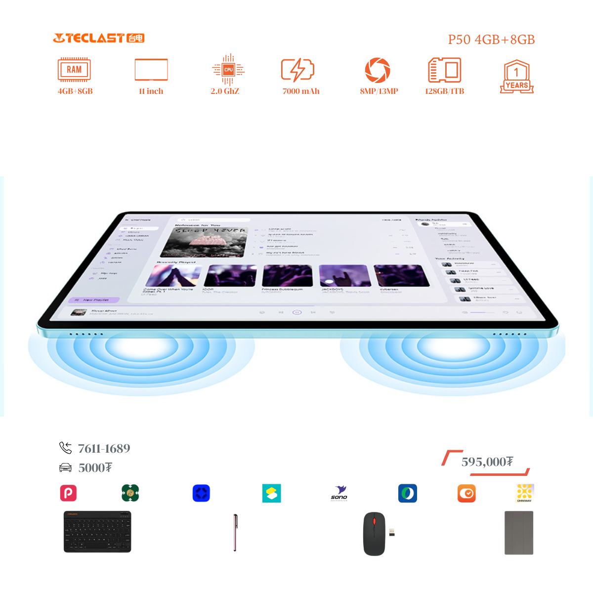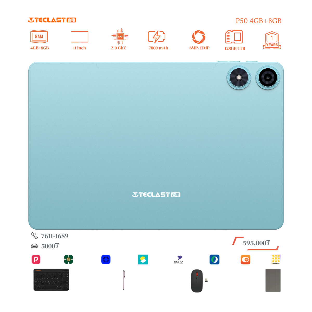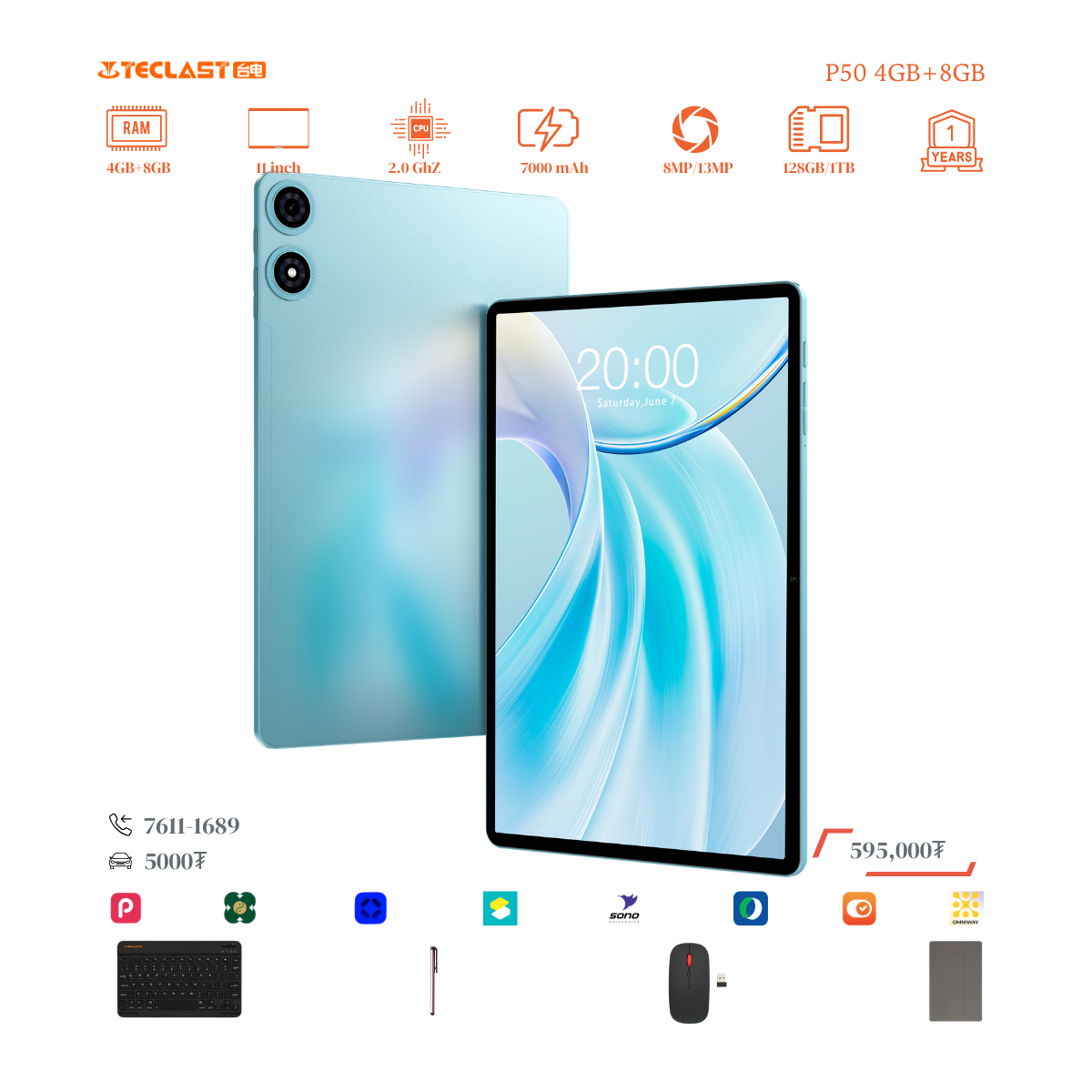 Тус тавлетийн онцлог нь өмнөх загвараас хурд нэмэгдэж 8GB+12GB LPDDR4X буюу 20GB гаргах боломжтой болсон байгаа. Камер 8MP ар тал 13MP-тай бөгөөд 2 сим эсвэл 1 сим TF cart орох боломжтой. #Teclast брэндийн тус загвар бид нэмэлтээр үзэг, keyboard, mouse, зөөлөн кейс дагалдуулж олгох болно. Үйлдвэрийн 1 жилийн баталгаатай.