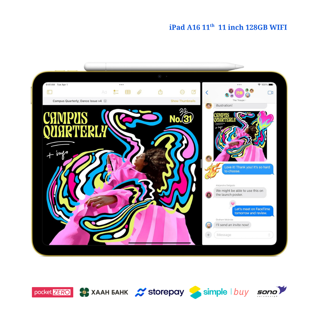 #Apple брэндийн онцлог нь A16 чиптэй учир 4K видео бичлэг, контент засварлах, видео дээр зураг зурахад хялбар. 11 инчийн Liquid Retina дэлгэц нь гайхамшигтай зотон зураг бүтээдэг. 12MP камертай Smart HDR4-ийн тусламжтайгаар илүү бодиттой харагдана. True Tone технологийн тусламжтайгаар ямар ч гэрэлд видео үзнэ.