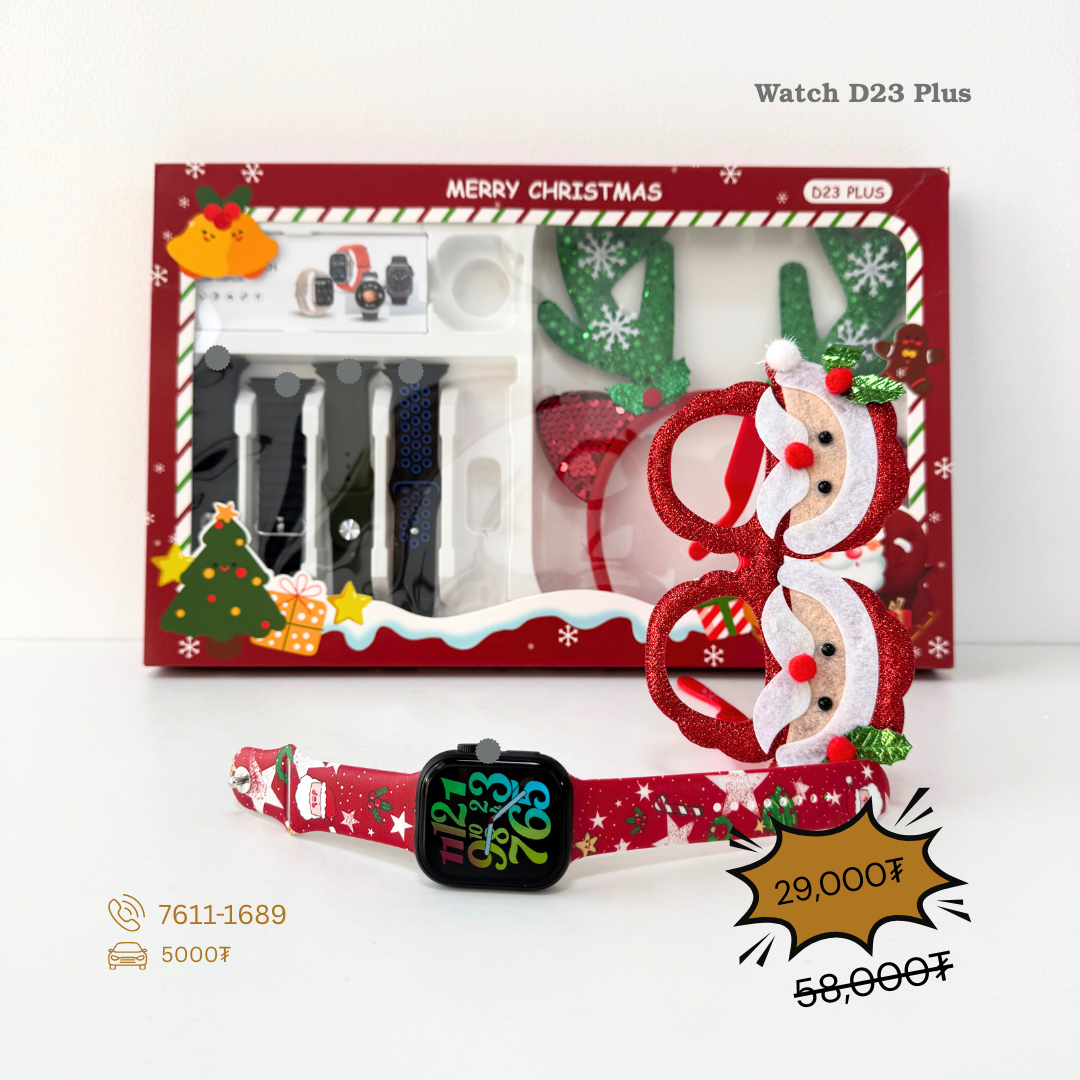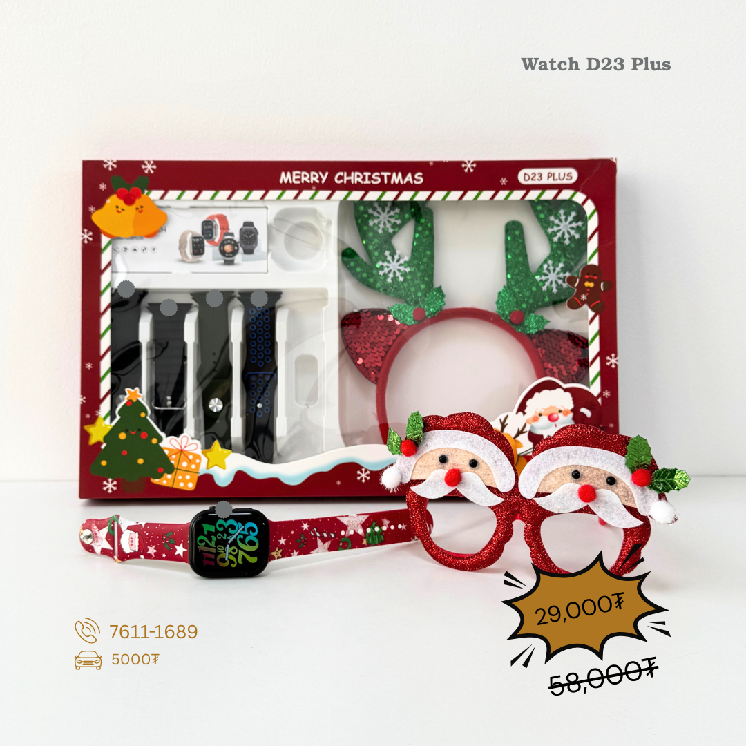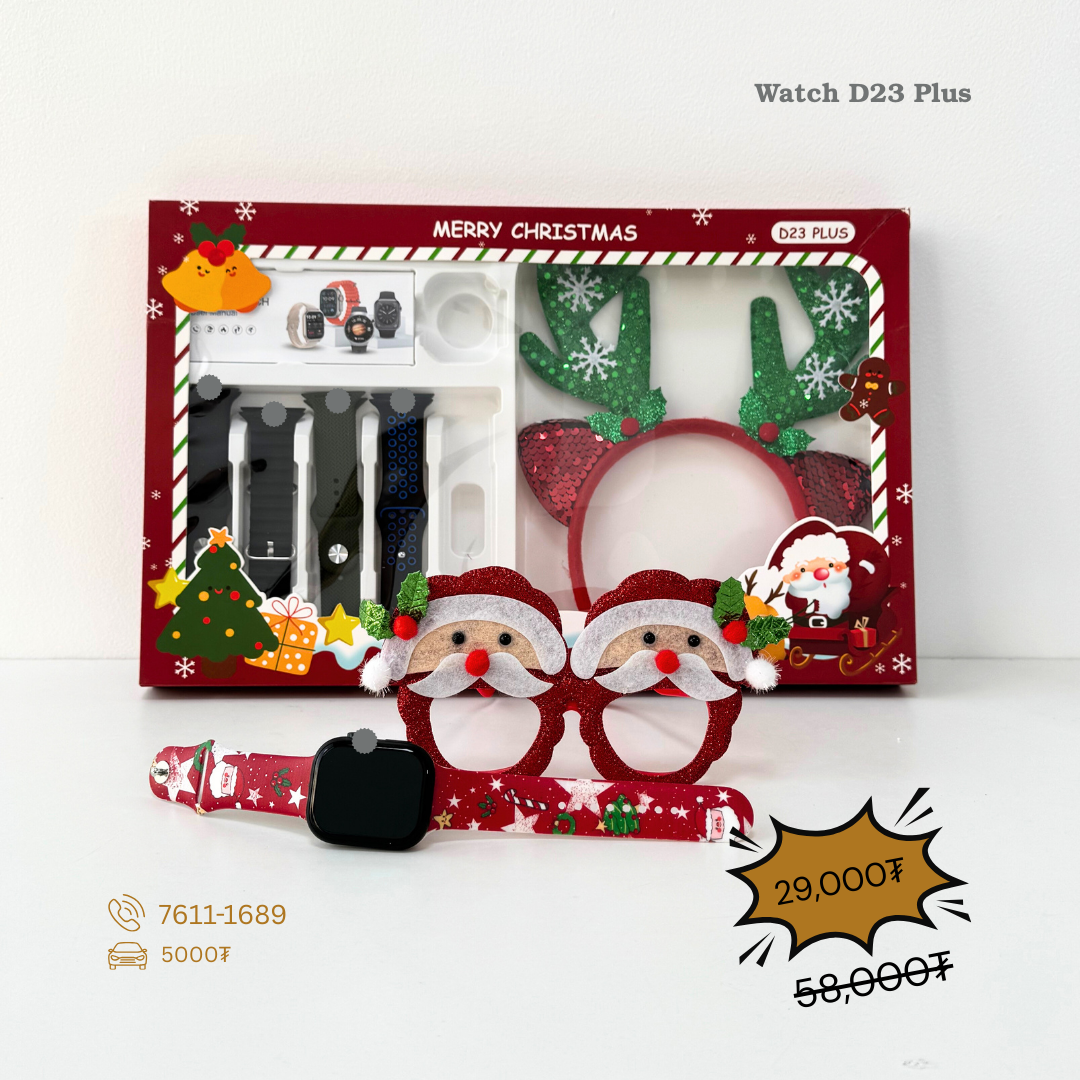 Тус #MerryChristmas загвар нь өвлийн өвгөний хэлбэртэй нүдний шил, цаа бугын эвэрний хэлбэртэй үсний даруулгатай, 5 өнгийн оосортой ухаалаг цагны багц юм.