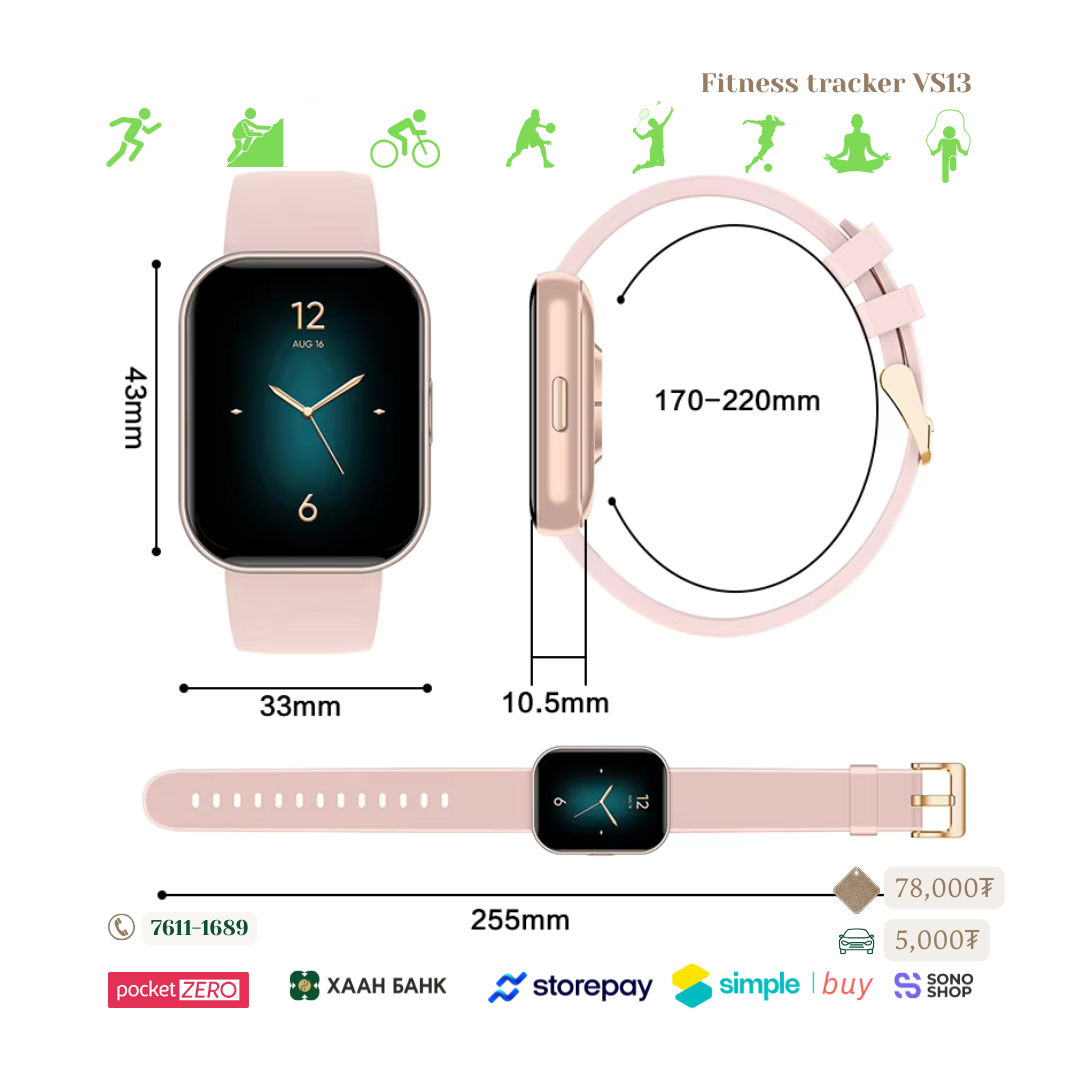 Тус бүтээгдэхүүн 1.75 инчийн дэлгэцтэй. Даралт, хүчилтөрөгч, стресс, унтаж амарсан цаг хянах боломжтой. Amoled дэлгэцтэй. #Android, #Iphone утастай холбогдож яриа дуудлага утасаар авах боломжтой. Спортын 20 төрлийн модатай. Даралт, цаг агаарын мэдээлэл гм харна.