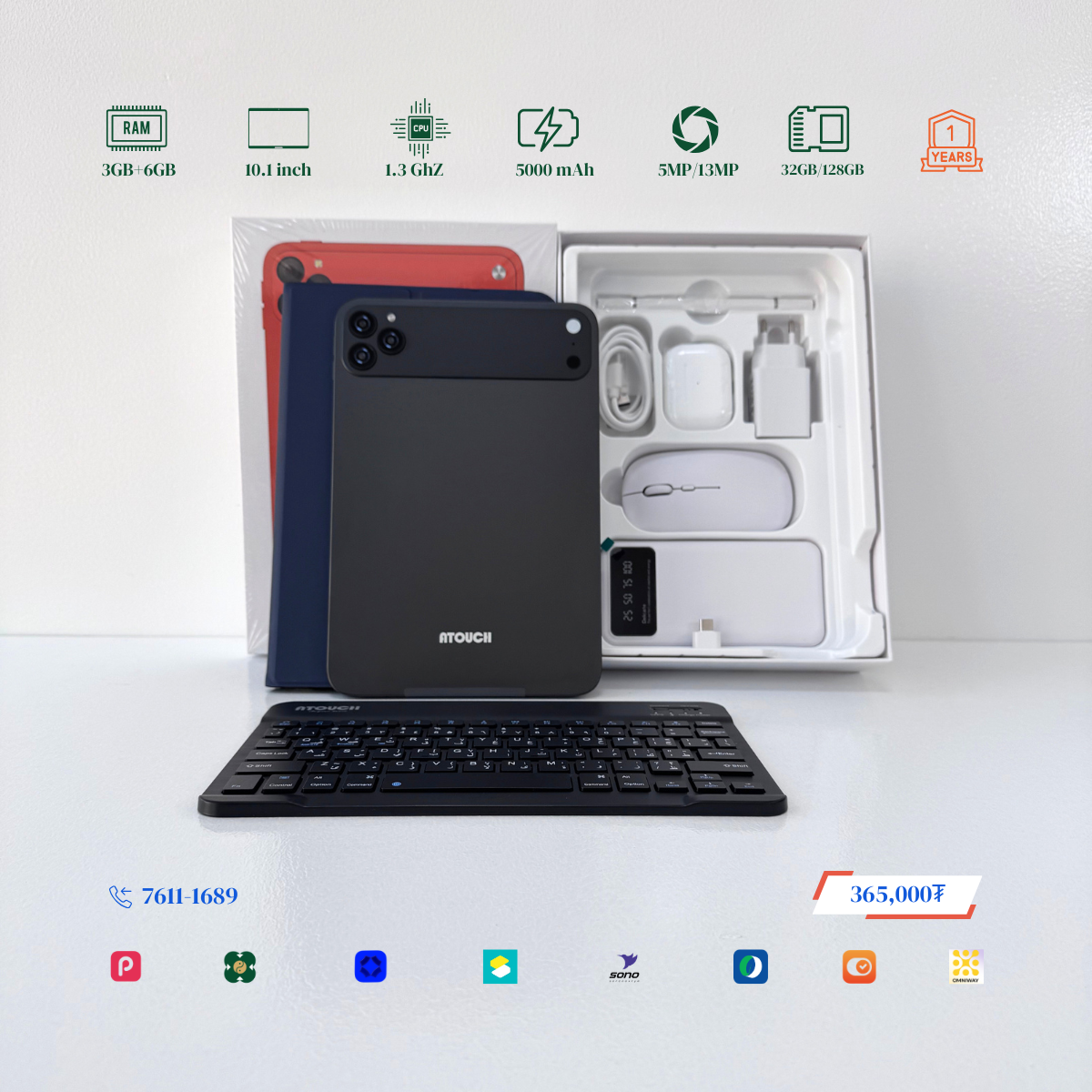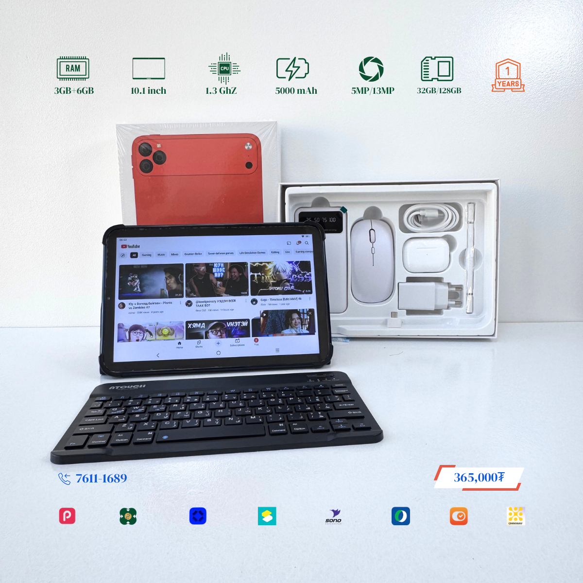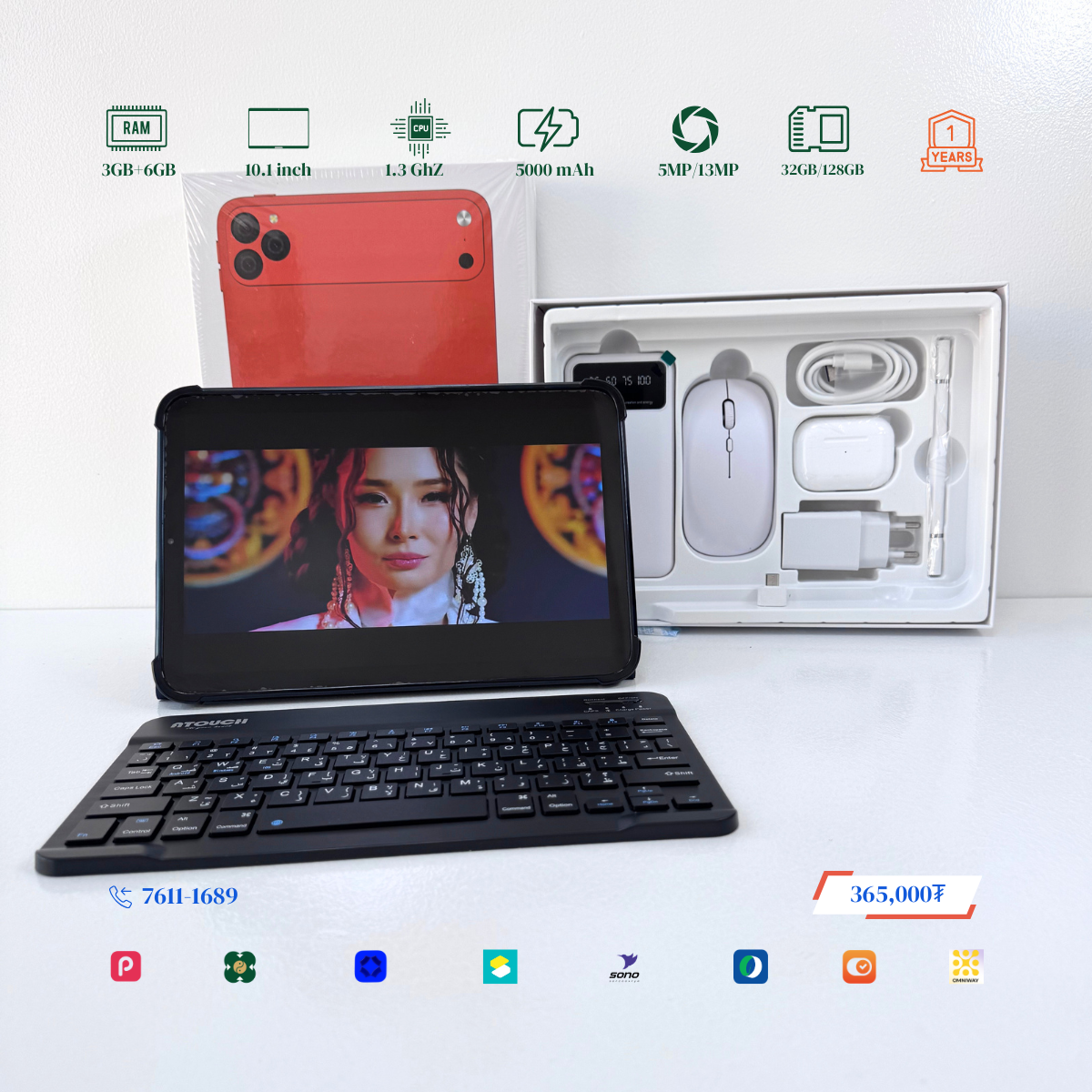 Тус тавлетийн онцлог нь 2 сим эсвэл 1 сим TF cart орох боломжтой. Хамгийн гол нь бүрэн багц юм. Үүнд: Тавлет, keyboard, powerbank, чихэвч, case, дэлгэцний наалт, pen, цэнэглэгч гээд бүгд багтсан байгаа. Та хүүгүй урьдчилгаагүй авах боломжтой.