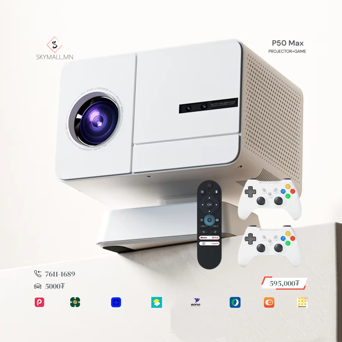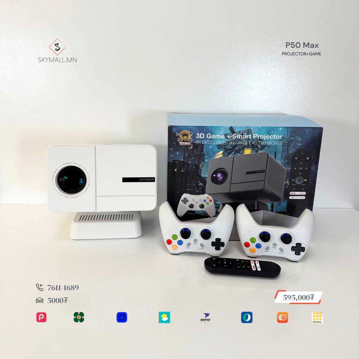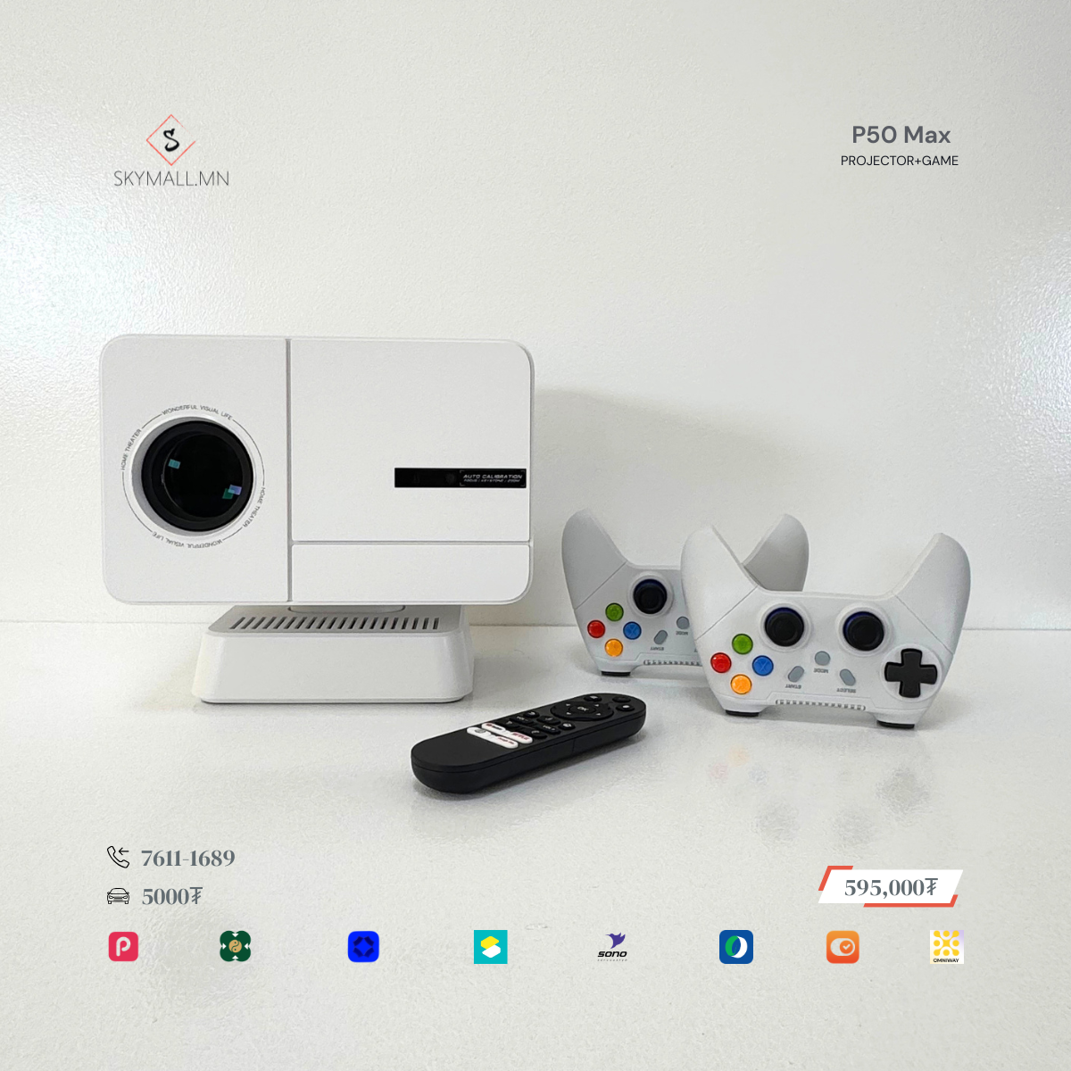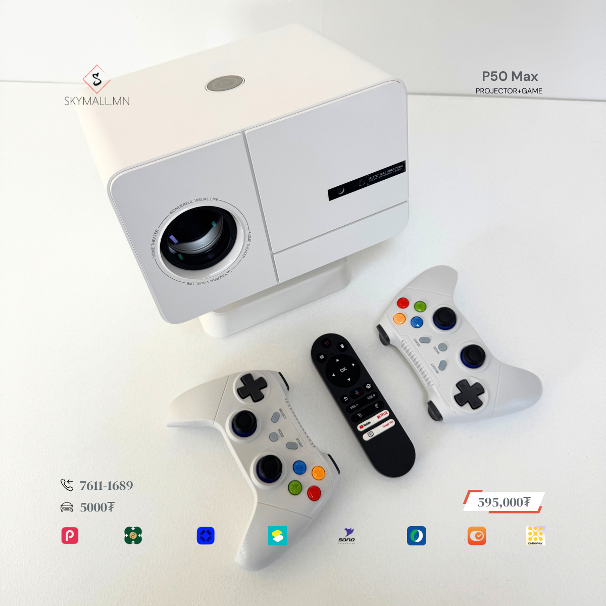 Тус Зөөврийн smart projector нь 400 Lumens 4K гаралттай. Тоглоомын console 2 ширхэгтэй WIFI-аар интернэт холбогддог өөр дээр Youtube, Spotlfy, Netflix, ATV, Prime video, HBOMAX тэй мөн, 1990-2000 оны алдартай #RETRO тоглоом болох #Contra, #Mario, #Tank гэх мэт 10,000+ тоглоомтой. Цагийн зугаатай өнгөрүүлээрэй. 150 инч